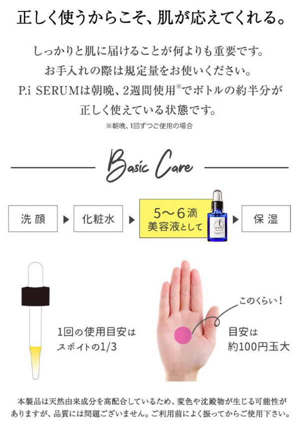 ピーアイセラムの効果は、短い期間で生じてくるものではないようです。なので1か月以上をベースにして長期的にピーアイセラムを使い続けることが、